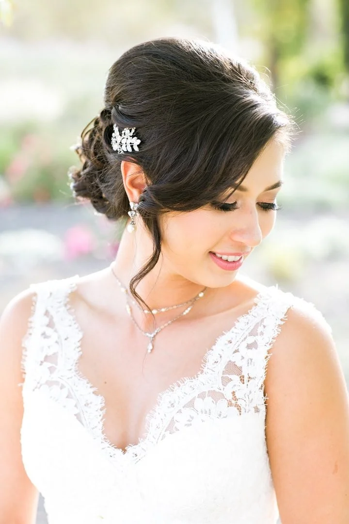 wedding, bridal, hair, makeup, updo, romantic, love, sidebun